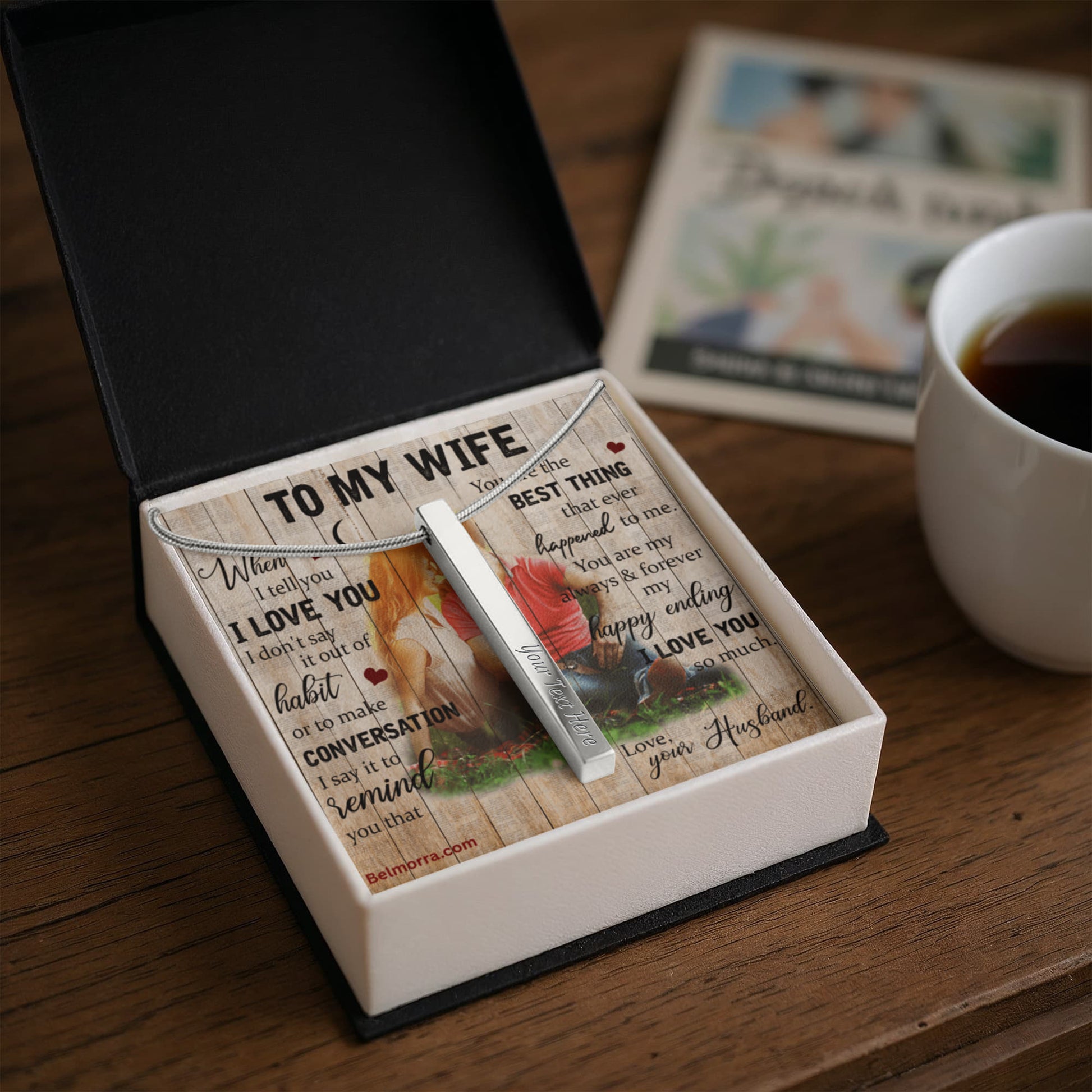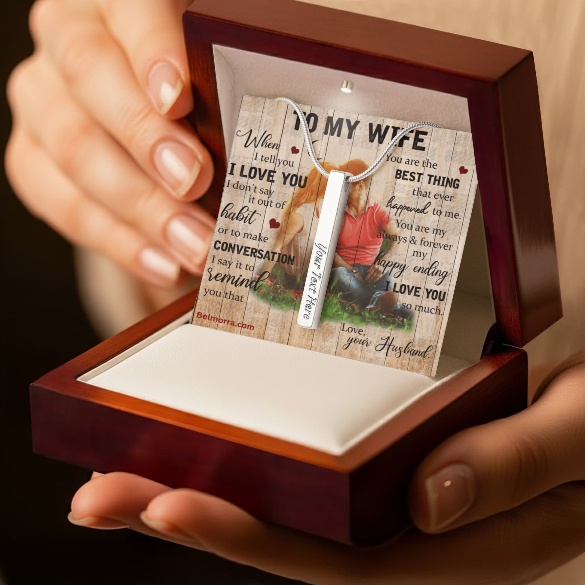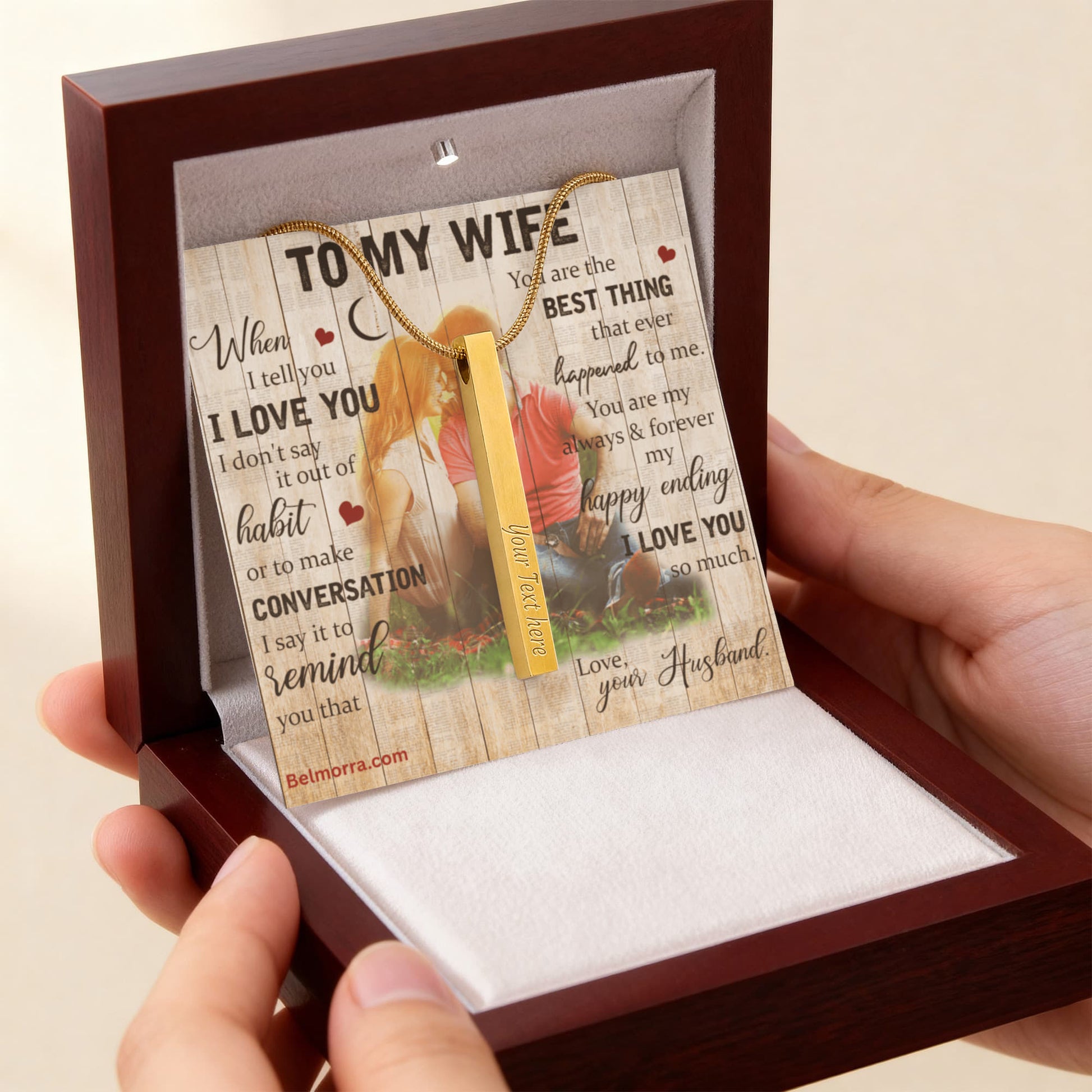 Engraved 4-Sided Stick Necklace for Wife "You Are the Best Thing" (Wood with Couple )